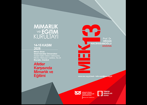 10-11 Kasım 2023 tarihlerinde İzmir Yüksek Teknoloji Enstitüsü’nde “Cumhuriyetin İkinci Yüzyılı ve Mimarlık Eğitimi” teması ile düzenlenecektir.