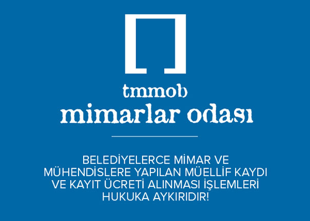 Oysa son zamanlarda üyelerimizden, bazı belediyelerin proje müelliflerine yönelik kayıt işlemi yaptığı ve bu işlemden yıllık kayıt ücreti aldığına dair bilgeler gelmektedir.