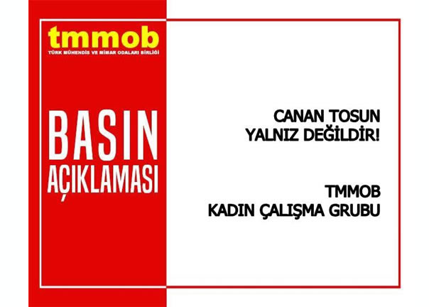 Bizler TMMOB’li mühendis, mimar ve şehir plancısı kadınlar olarak arkadaşımız Canan Tosun’a yönelik bu saldırıyı, tacizi ve olay sonrasında failin serbest bırakılmasını kınıyor ve kadına yönelik her türlü şiddetin takipçisi olacağımızı beyan ediyor ve kamuoyu ile paylaşıyoruz.