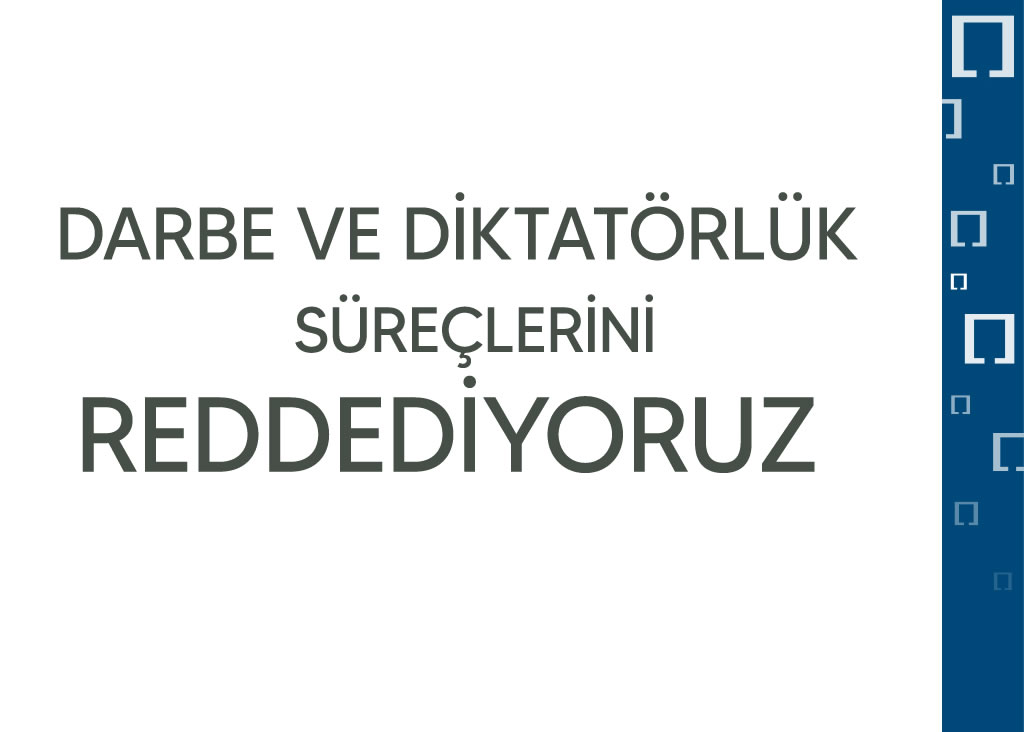 Bu vesile ile kurulan “otokratik ve karanlık rejimin” sürdürülemeyeceğini; bütün kurum ve kurallarıyla işleyen tam ve eksiksiz “demokrasi ve adalet” taleplerimizin takipçisi olacağımızı; doğal ve kültürel değerlerimize sahip çıkmakta kararlı olduğumuzu; sağlıklı ve güvenli yaşam çevrelerinin oluşturulması için çaba göstermeye devam edeceğimizi bir kez daha vurguluyoruz.
