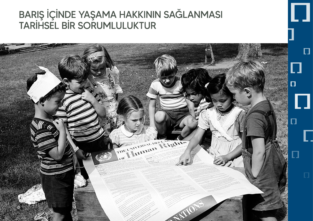 Toplumların maddi ve manevi varlıklarının, kültürlerinin tümünün sonu olabilecek savaşları önlemek ve bu değerleri korumak üzere, 1948 yılında İnsan Hakları Evrensel Beyannamesi ile temel hak ve özgürlükler güvence altına alınmış; Devletler barış hakkını korumak ve bu hakkın uygulanmasını sağlamakla yükümlü kılınmıştır. Buna göre; bütün insanlar özgürdür, saygınlık ve haklar bakımından eşittir. Barış içinde yaşam, hürriyet ve güvenlik her bireyin hakkıdır.