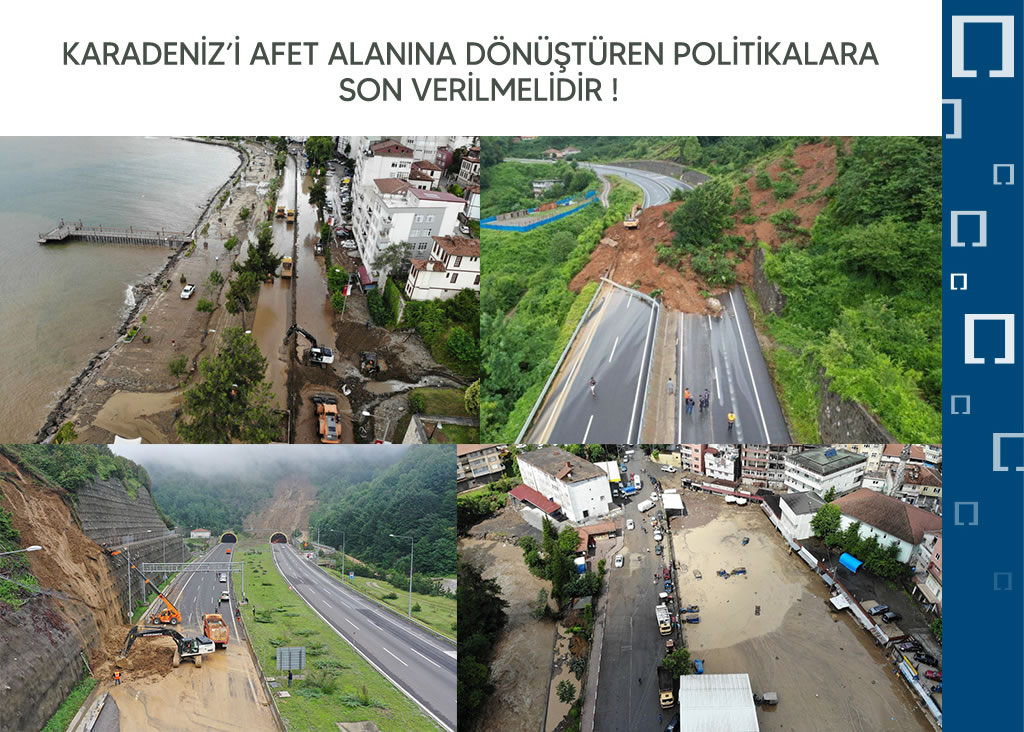 Karadeniz Bölgesi’nde son on yıldır giderek artan felaketlere karşın, yerleşim yerlerinde yıkımlara sebep olan ve yıllardır uygulanan altyapı, kentleşme ve yapılaşma politikaları yaşanan acılara ve kayıplara rağmen sürdürülmektedir.