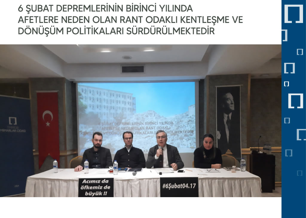 İktidar, yaşanan depremleri gerekçe göstererek; afet ve kriz koşullarını bir kez daha kendi adına fırsata dönüştürmüştür. Kamusal ve hukuki denetim yok sayılarak bölgede ve ülkede planlama ve imar süreci yeniden yapılandırılmıştır. Kamuya ait kaynaklar, kentler, doğal ve kültürel değerlerin yatırım araçlarına dönüştürülmesi için Anayasa ve bütün hukuk kuralları devre dışı bırakılmıştır.