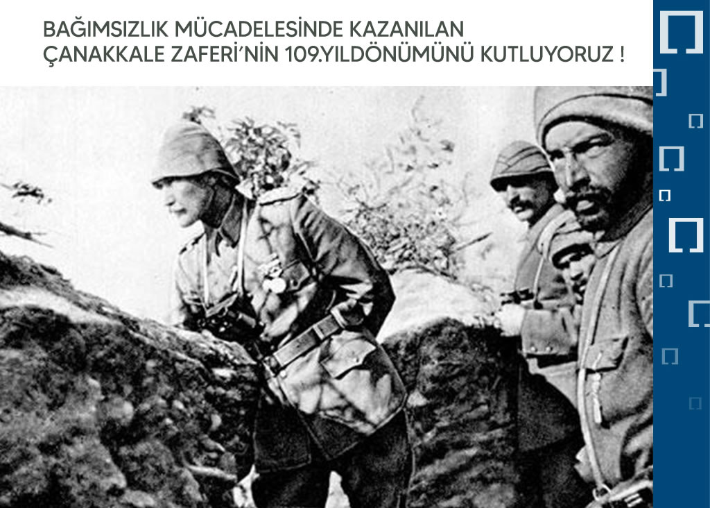 Yaşadığımız toprakların işgaline karşı, bağımsızlık ve özgürlük mücadelesinde 18 Mart 1915’te kazanılan Çanakkale Zaferi’nin 109.Yıldönümünü kutluyoruz.
