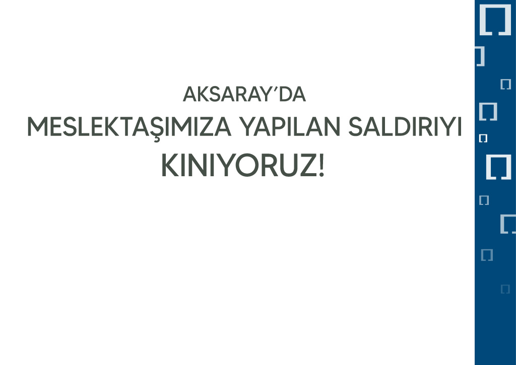 21 Ağustos 2024 Çarşamba günü Aksaray’da meslektaşımız Tacinur Öztürk Gülseven’e bıçaklı saldırı girişiminde bulunulmuştur. Yapılan saldırıyı kınıyor, meslektaşımıza geçmiş olsun dileklerimizi iletiyoruz.