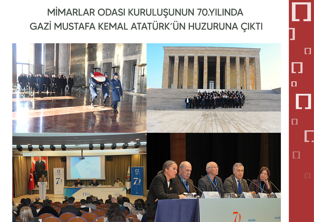 Kurulduğu tarihten bu yana çalışmalarını, ülke ve kamu yararına; kentlerin kimlikli, planlı ve sağlıklı gelişmesi hedefiyle yürüten Mimarlar Odası, 70.Kuruluş Yıldönümü dolayısıyla 19 Aralık 2024 tarihinde Gazi Mustafa Kemal Atatürk’ün huzuruna çıktı.